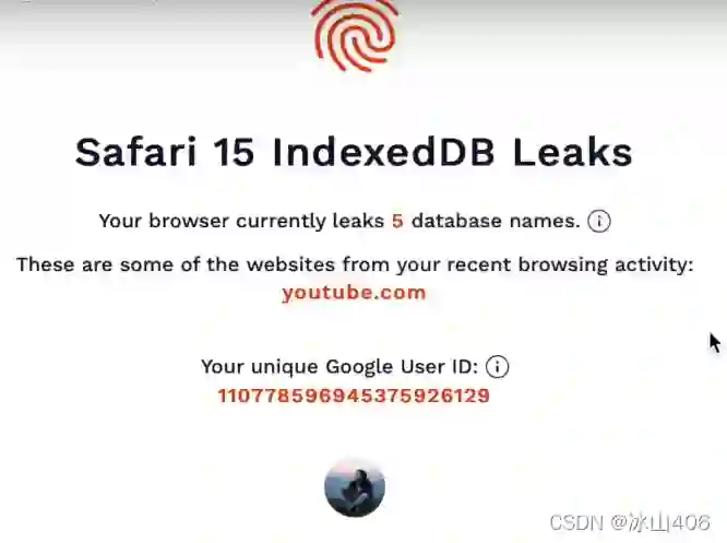 在苹果官网上,Safari浏览器一直以强大的隐私保护功能作为卖点。其中,智能防跟踪和隐私标签等功能满足用户需求。但在近日,浏览器指纹识别服务商FingerprintJS发布了一篇博客,经他们调查发现,Safari 15在实现IndexedDB API时存在一个漏洞,该API允许任何网站跟踪用户的浏览记录,甚至泄露用户Google帐户的部分身份信息。