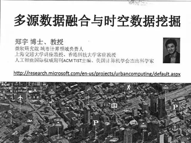 郑宇,微软研究院城市计算领域负责人、资深主任研究员、上海交通大学讲座教授、香港科技大学客座教授、人工智能国际权威期刊 ACM TIST 主编、美国计算机学会杰出科学家,ACM数据挖掘中国分会(KDD China)秘书长。2013年被MIT Technology Review评为全球杰出青年创新者(TR35)。在国际顶尖会议和期刊上发表论文百余篇,论文被引用12000多次, H-Index 53(Google Scholar,截至2017-3-15),2016年论文单年被引用3200余次。