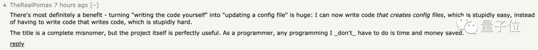 有网友认可这样的观点,毕竟对于许多做生产的机器学习工程师来说,“任何不需要做的编程工作”都是没有意义的,是在“浪费时间和金钱”。