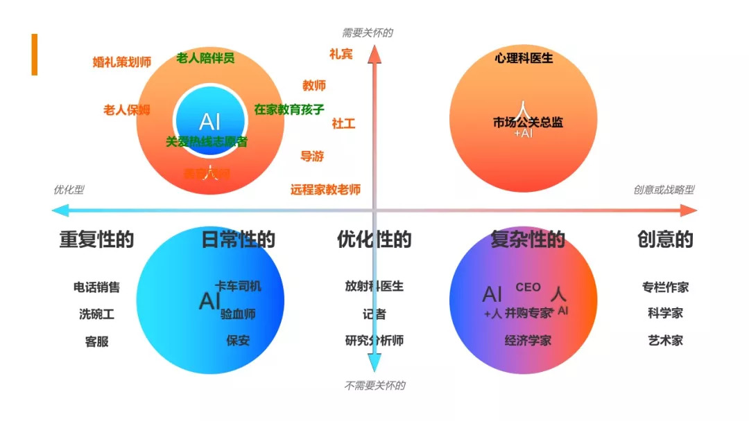 于是他用象限图给出了提炼,更详细的内容也可移步开复老师新书《AI·未来》。
