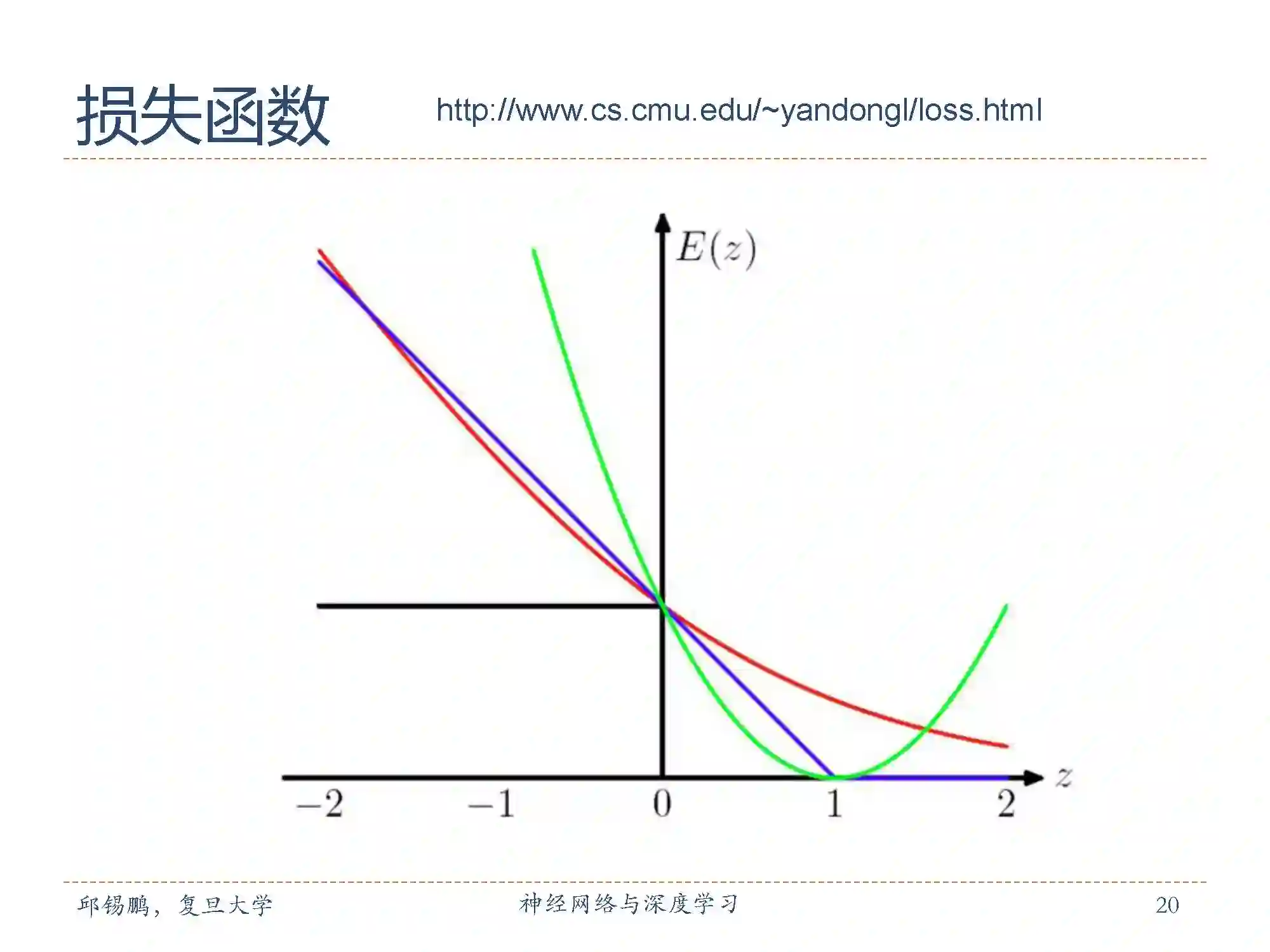 上图是摘自http://www.cs.cmu.edu/~yandongl/loss.html 不同损失函数直观对比。
