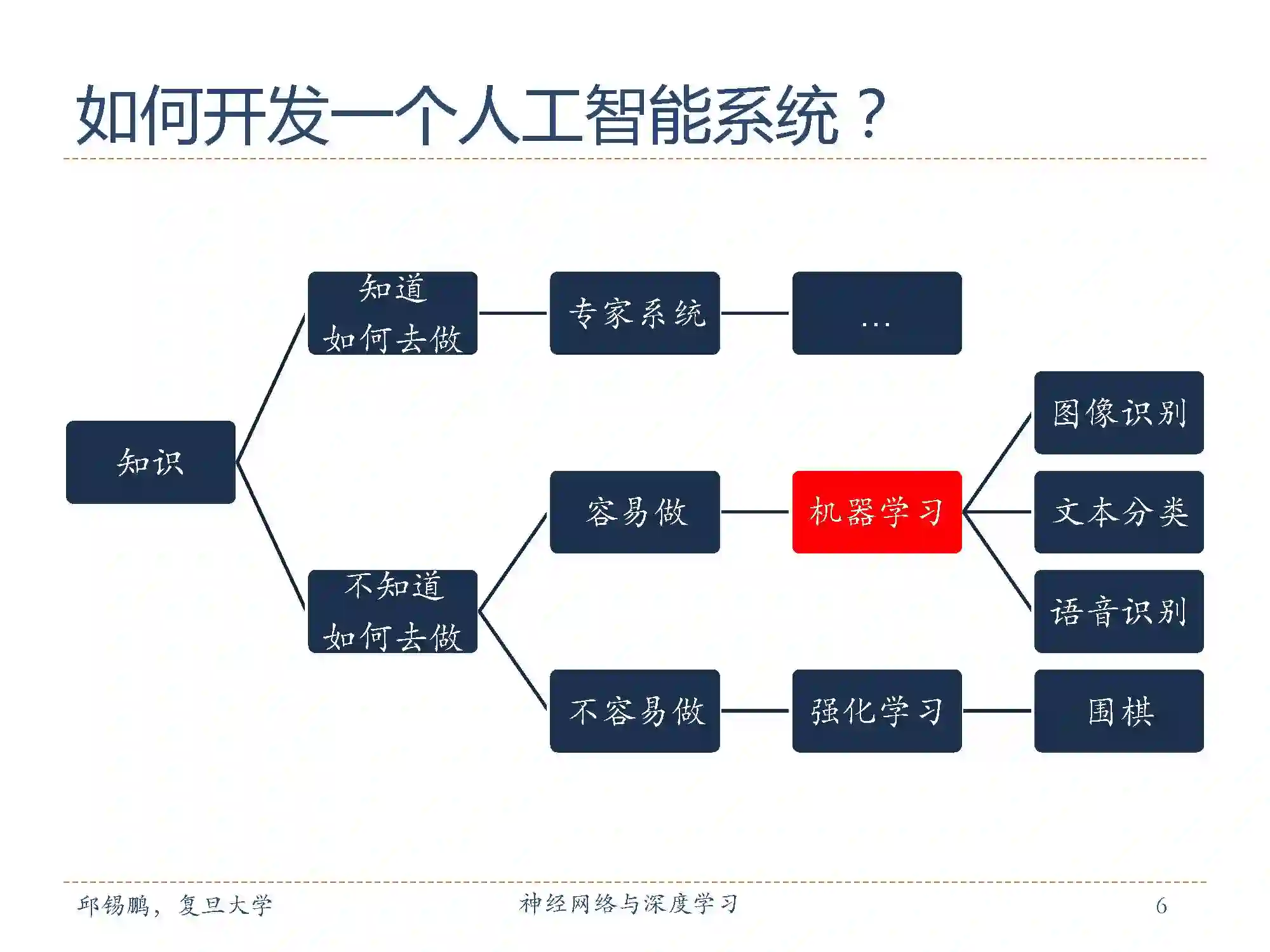 开发一个人工智能系统,需要根据已有知识分析任务该怎么做,根据分析结果判断使用不同的方法。如知道该任务的规则,那么可以采用专家系统来做。如果不知道该怎么做的,根据任务的难易程度判断是机器学习或增强学习来做。