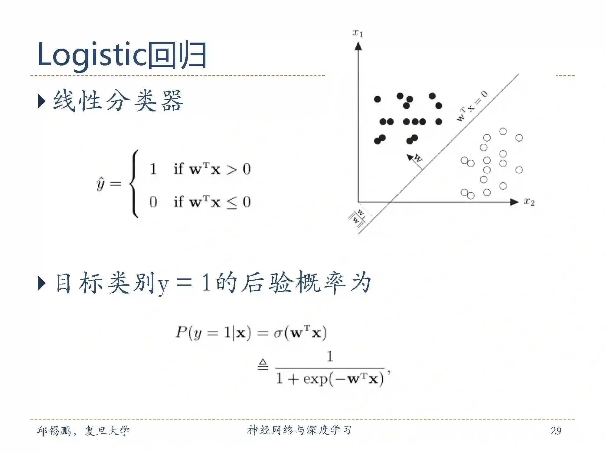 Logistic 回归是一个两类分类问题的线性模型。两类分类问题中,预测的目标标签 y 只有两种取值,一般为 {0, 1}或者 {-1, +1}。为了符合 logistic回归的描述习惯,文中采用 {0, 1}。