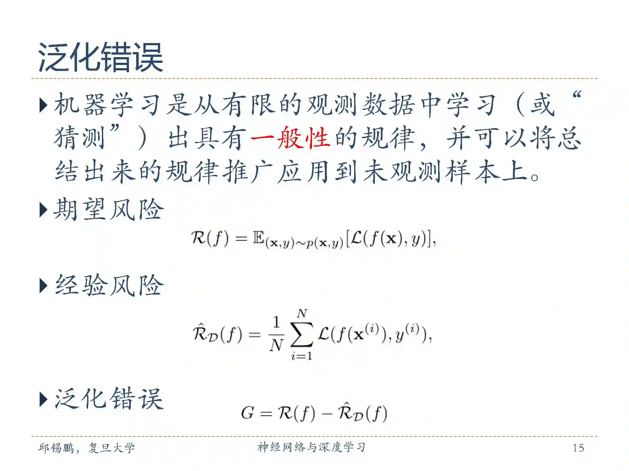 泛化错误函数表明一个机器的推理能力,即从样品数据中推导出的规则能够适用于新的数据的能力。