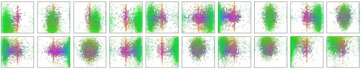DETR可视化decoder预测得到的20个slot。可以观察到每个slot学习到了特定区域的尺度大小。Object queries从这个角度看,其实有点像Faster-RCNN等目标检测器的anchor,结合encoder的positional embedding信息让每个slot往学习到的特定区域去寻找目标。