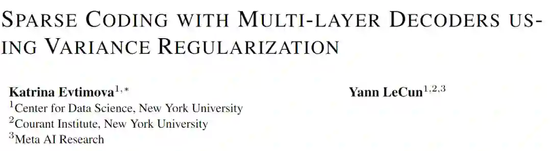 最近LeCun提出了一种新的稀疏编码协议可以防止编码的崩溃,而不需要对解码器进行正则化处理。新的编码协议直接对编码进行正则化,使每个潜码成分(latent code component)在一组给定的输入的稀疏表示上具有大于固定阈值的方差。