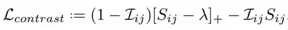 其中 I 表示指示函数,如果 i 和 j 为正样本,则 I_ij 为 1,否则它就等于 0。我们可以了解到,正样本对的损失就直接是负的相似性 -S_ij,负样本对只有在相似度高于阈值 λ时损失函数才大于0。从这个简单的案例,我们可以发现这类损失函数的目标,即在嵌入空间中将标签相同的同类样本拉得更近,将标签不同的异类样本推地更远。