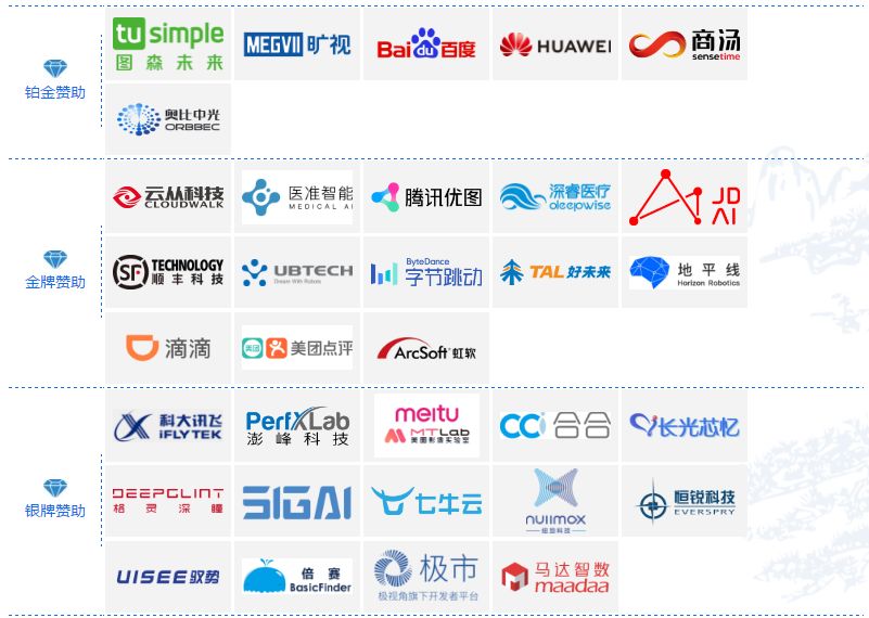 铂金赞助商:图森未来、旷视科技、百度、华为、商汤科技、奥比中光