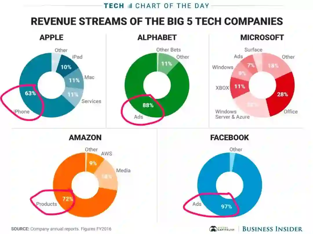 对标Amazon、Google、Apple、Facebook,你会发现:BAT+小米的优势和业务模式,几乎都是类似的。