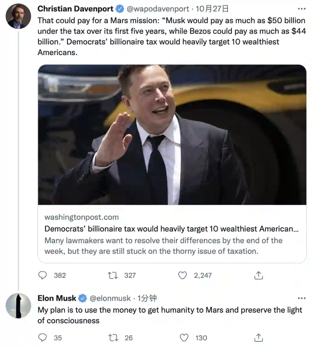 「与其交500亿税,我打算用这笔钱送人类去火星上,保留认知之光」。