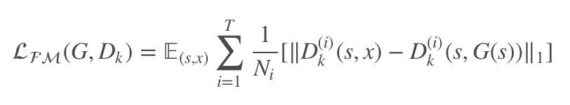 由于生成器要产生不同尺度的图像,为使训练更加稳定,这里引入特征匹配损失: