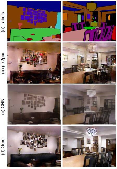 之前的一些利用语义标签合成图像的工作存在两个主要问题:1. 难以用 GANs 生成高分辨率图像(比如 pix2pix 方法);2. 相比于真实图像,生成的图像往往缺少一些细节和逼真的纹理。