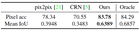 本文提出了一个有通用性的基于条件 GANs 的网络框架,用于高分辨率图像合成和语义操作。相比于 pix2pix,本文在语义分割结果和图像合成的清晰度以及细节上都有了很大的提升。