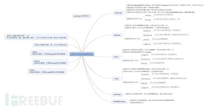 主动扫描,可以自主开发扫描器加以商用扫描器辅助的形势。可以编写动态爬虫,抓取url去重后放入扫描队列,但目前很少有爬虫能做到全覆盖。借助市面优秀的扫描器比如awvs、appscan、arachni等,可以根据个人喜好,嵌入主动扫描。这里我主要介绍下awvs,老版本有命令行接口,可以调度爬虫、扫描,可以定制xml文件配置不同的扫描策略,扫描结果相对比较全面。我们可以通过对比扫描,优化自主开发的工具。曾在14年写了一个调度脚本,多线程调用扫描器,并把结果读取入库统计,在一个人的安全部可以极大的简化工作。当年稚嫩的调度架构如下: