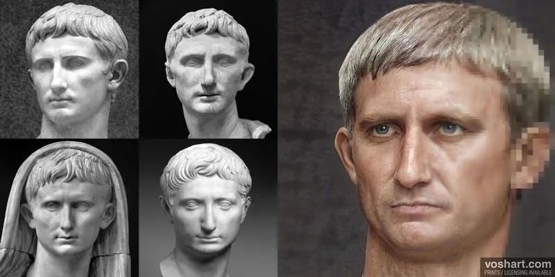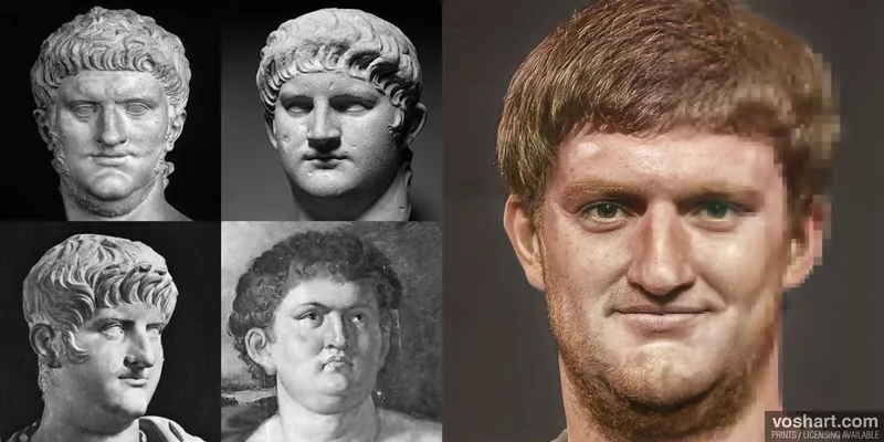 Voshart通过从雕像,硬币和绘画中收集的皇帝的图像,然后根据历史描述手动调整了肖像,并将其反馈给GAN。