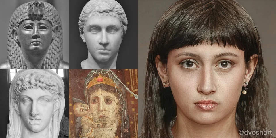 一个名为ColorizedStatues的作者复原了断臂维纳斯和古埃及艳后的图像,他同样使用了Artbreeder开源工具进行着色渲染。