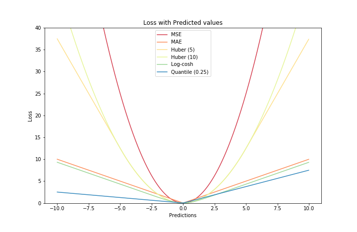 如果离群点是会影响业务、而且是应该被检测到的异常值,那么我们应该使用MSE。另一方面,如果我们认为离群点仅仅代表数据损坏,那么我们应该选择MAE作为损失。