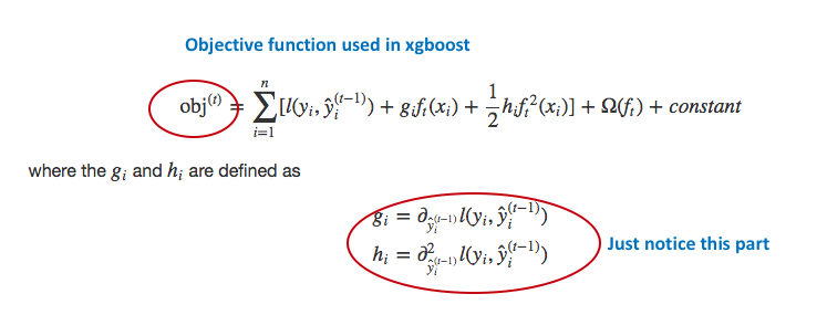 XGBoost中使用的目标函数。注意其对一阶和二阶导数的依赖性。