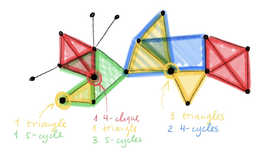 Michael Bronstein 近期在论文「Improving graph neural network expressivity via subgraph isomorphism counting 」中介绍了一种不同的方法,它摒弃了 WL 层次结构,转而采用了一种消息传递机制,这种机制可以感知环、团、路径等局部图结构。这使得我们的图神经网络拥有吸引人的局部性以及标准消息传递架构的低计算复杂度。同时,作者可以证明,该网络比 2-WL 更强大,并且至少不弱于 3-WL。这种视角开启了图论领域中,尚未在图神经网络表达性方面被探索过的开放性问题的深层次的联系。