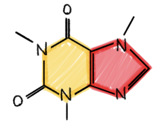 在实验中,我们观察到:不同的子结构会为不同的问题和数据集带来帮助。因此,对于子结构的选择可能需要视具体问题而定。幸运的是,在某些实际应用中,我们往往知道何种子结构是有用的。例如,在社交网络中,三角形和高阶的团是很常见的,并且有明确的「社会学」解释。在化学领域中,环是一种非常常见的模式(例如,五元、六元芳环在大量的有机分子中都存在)。下图显示了一种我们大多数人都很熟悉的示例:咖啡因的分子结构。
