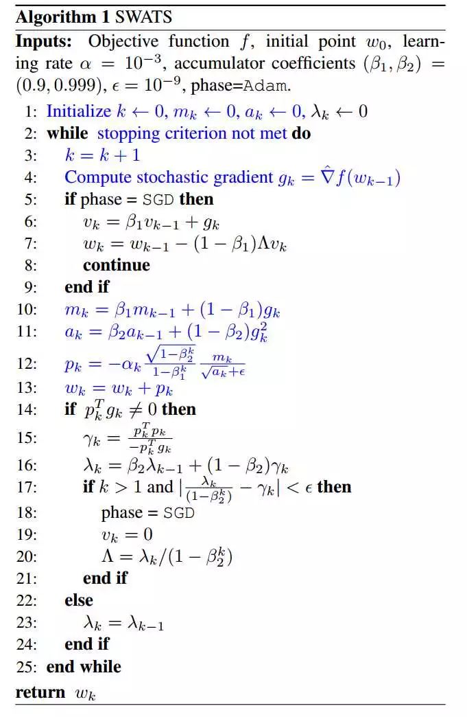 于是他们提出了一个用来改进Adam的方法:前期用Adam,享受Adam快速收敛的优势;后期切换到SGD,慢慢寻找最优解。这一方法以前也被研究者们用到,不过主要是根据经验来选择切换的时机和切换后的学习率。这篇文章把这一切换过程傻瓜化,给出了切换SGD的时机选择方法,以及学习率的计算方法,效果看起来也不错。