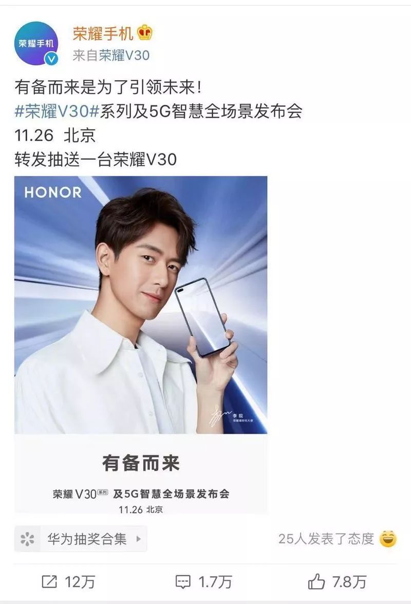 【荣耀官宣:首款5G手机荣耀V30将于26日发布】