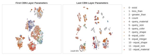 然后很神奇的发现CBN的参数和不同层级的推理是直接相关的,也就是说CBN确实自己学到了不同层次的推理。