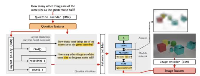 使用端到端的模块化神经网络来实现视觉推理