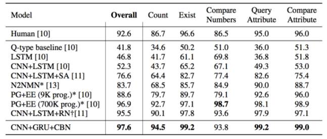 虽然说利用了推理标签这种有点Cheating的手段,但是直接超过人类让人不好接受呀,只能说CLEVER数据集还是太简单了点吧。