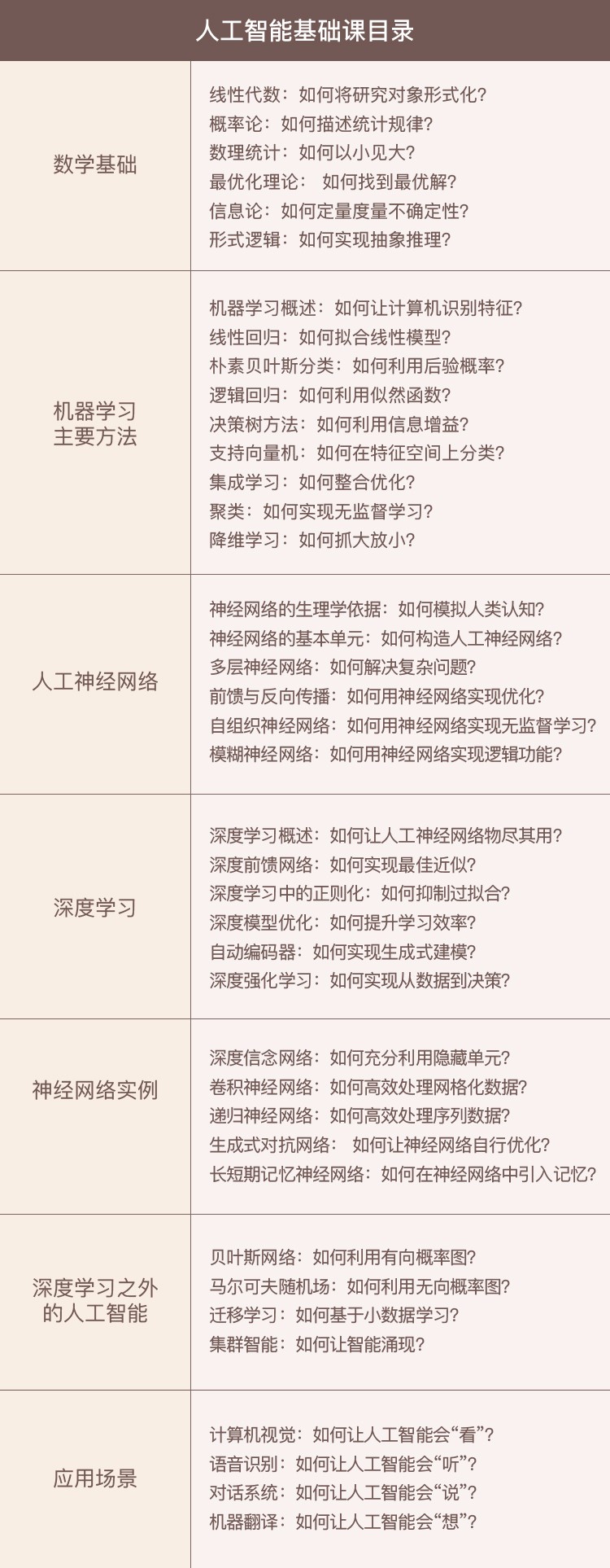 数学基础知识蕴含着处理智能问题的基本思想与方法,也是理解复杂算法的必备要素。今天的种种人工智能技术归根到底都建立在数学模型之上,要了解人工智能,首先要掌握必备的数学基础知识,具体来说包括: