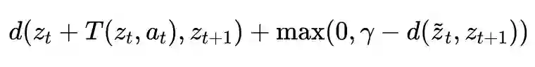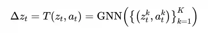 的表示尽可能地接近,而迁移到世界模型中,就是要将 entity 换成物体的 state,relation 换成 action,即经过图卷积后的得到的新的表示,通过下面的式子进行优化: