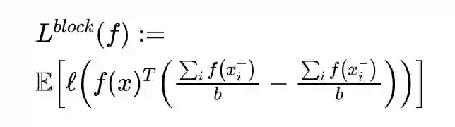 这篇文章通过定义 latent class 以及样本和 latent class 的距离入手,推导出了二分类情况下的 loss bound,保证了其的泛化性能。文章提出了一个改进算法就是进行 block 处理,不再直接优化各个 pair 的 inner product,而是转而优化 positive block 以及 negative block 的内积: