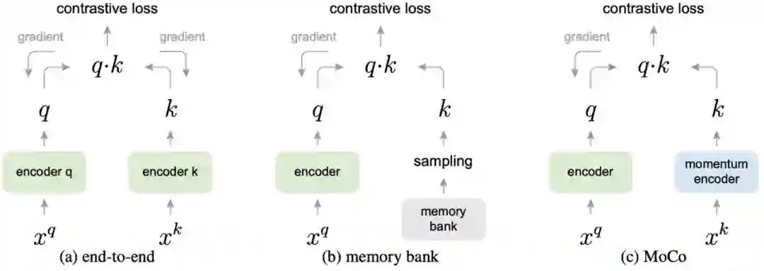 前面提到了,样本数量对于学习到的样本质量有很大的影响。MoCo 做的事情很简单,就是把负例样本的 encoder