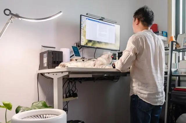 站立办公可以在一定程度上改善久坐对身体的压迫,通过久坐提醒,时不时站立办公一段时间,对身体还是有益处的,不过由于我在家办公时间不长,还有大沙发,所以一般也不会升降。