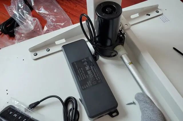 3、桌板虽然有预打孔,但是安装电源盒的时候还是要额外打孔,板材质地硬,尽量借助电动工具。