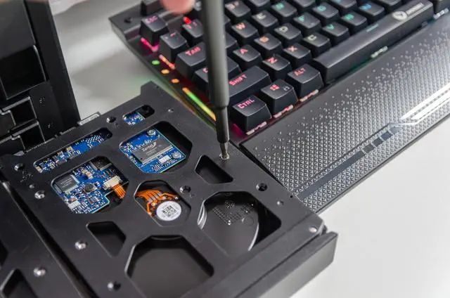 各盘位通过拉扣形式即可拉开取出,硬盘的安装需要通过背面螺丝固定(2 颗),两侧通过卡扣固定滑轨即可。