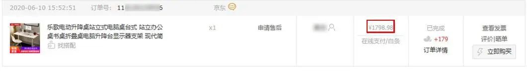 这款属于乐歌价格和功能比较平衡的一款电动升降桌,我 6 月 10 号购买,价格为 1799,之后 618 降价到 1399 保价成功,最后花费 1399 元。