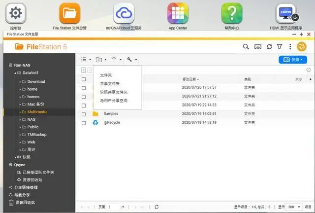 5 是一些比较不常用的功能了,「myqnapcloud」、应用工具等;