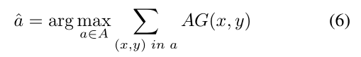其中,即动作 a 包含的区域在一定范围内向四个方向移动,选取在 AG map 包含的像素值之和最大的区域作为微调后的动作