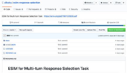 【阿里AI开源了新一代人机对话模型ESIM】阿里AI开源了新一代人机对话模型ESIM。该算法模型提出两年多,已被包括谷歌、facebook在内的国际学术界在200多篇论文中引用,更曾在国际顶级对话系统评测大赛(DSTC7)上获得双料冠军,将人机对话准确率的世界纪录提升至94.1%。阿里基于ESIM模型研发的智能语音点餐机、地铁语音售票机等应用已在杭州、上海等地落地。