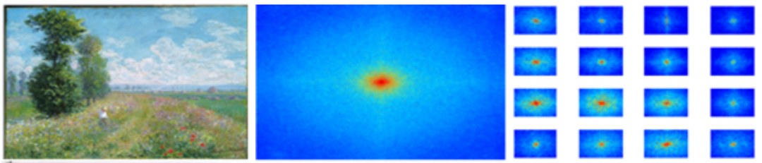 (a)莫奈绘画作品;(b)频域特征;(c)不同方向能力特征
