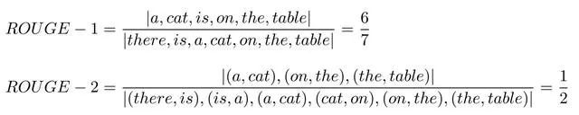 上面例子的 ROUGE-1 和 ROUGE-2 分数如下:
