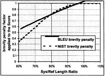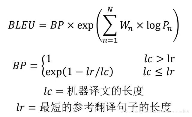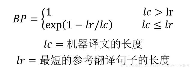 BP 是惩罚因子,如果译文的长度小于最短的参考译文,则 BP 小于 1。