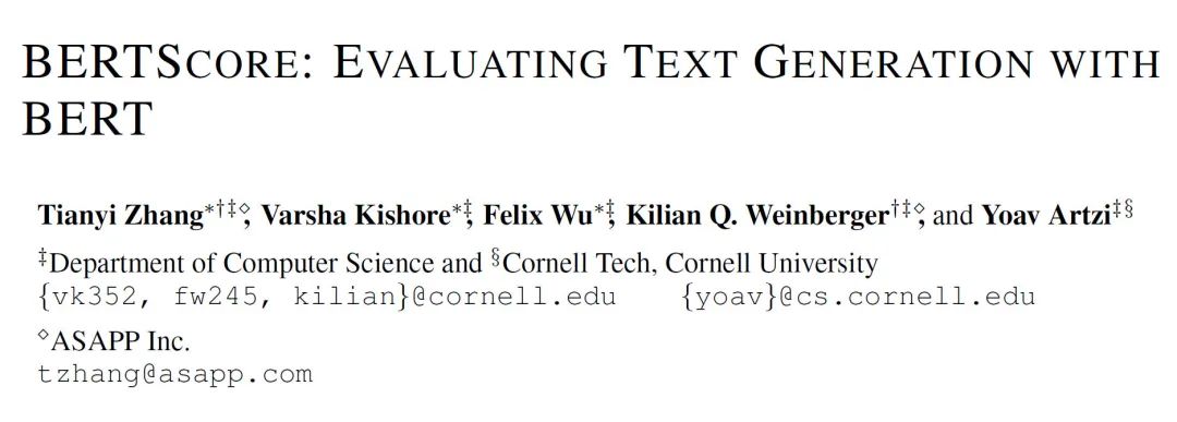 BERTSCORE: EVALUATING TEXT GENERATION WITH BERT , ICLR 2020