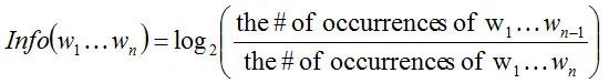 计算信息量之后,就可以对每一个共现n元词乘以它的信息量权重,再进行加权求平均得出最后的评分结果: