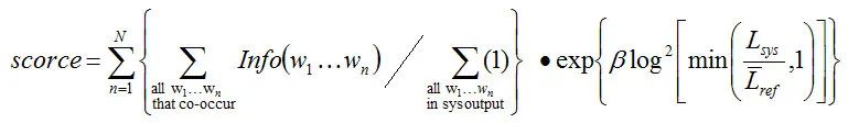 Wn 指 n-gram 的权重,一般设为均匀权重,即对于任意 n 都有 Wn = 1/N。
