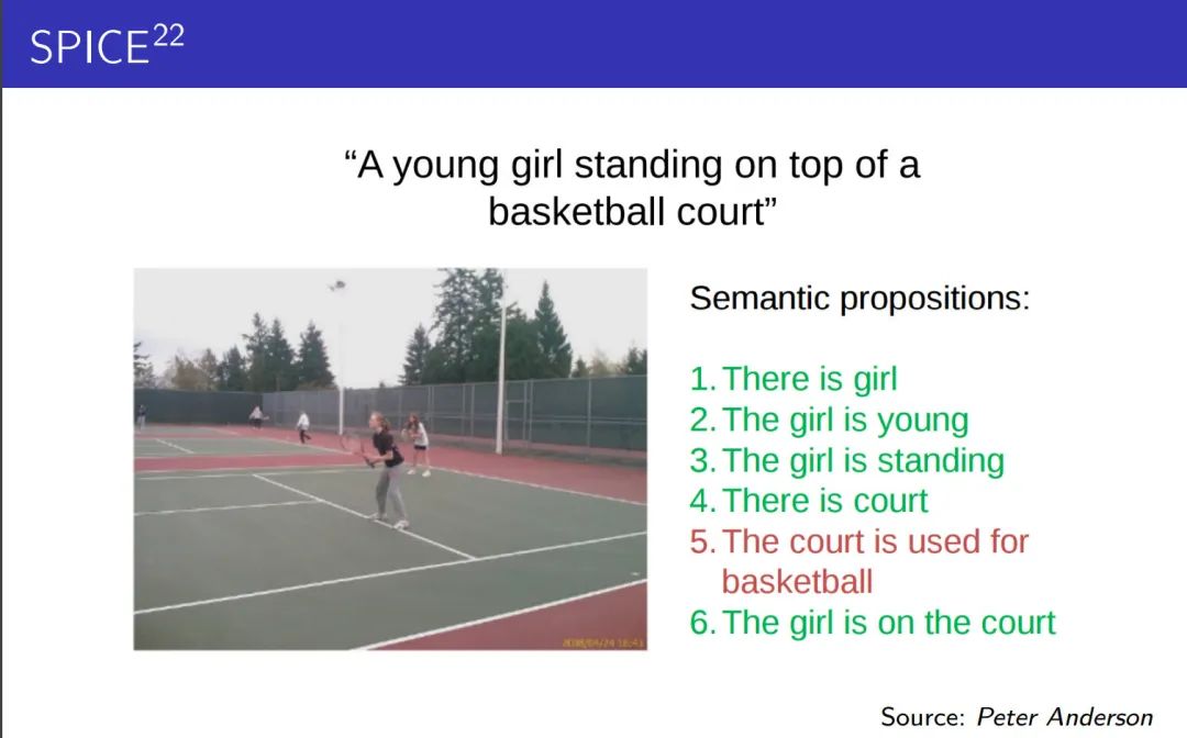 SPICE 也是专门设计出来用于 image caption 问题的。全称是 Semantic Propositional Image Caption Evaluation。
