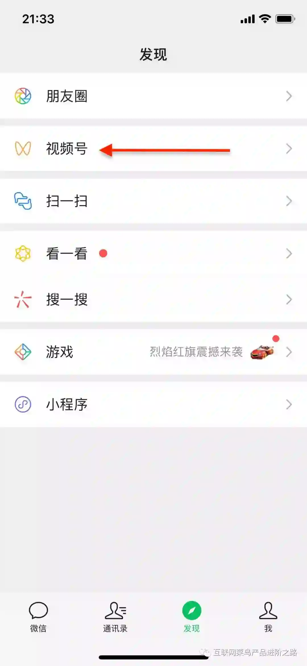 1)视频号的入口设置在“发现”页的朋友圈之下,其入口相对来说优先级较高,与朋友圈平级。