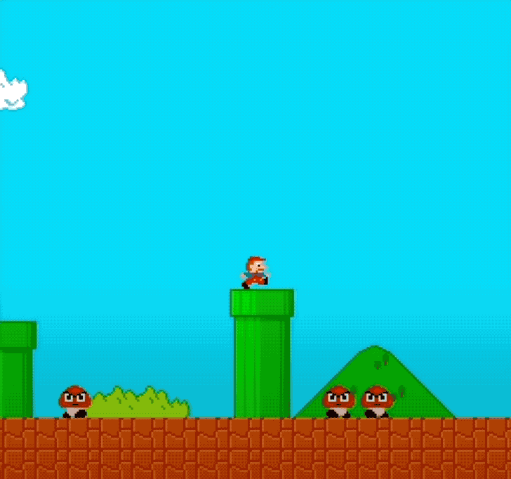 搞起来,其中,为了使马里奥的跳跃高度和我们按住键盘的时长为正比,需要创建一个跳跃计时器变量。