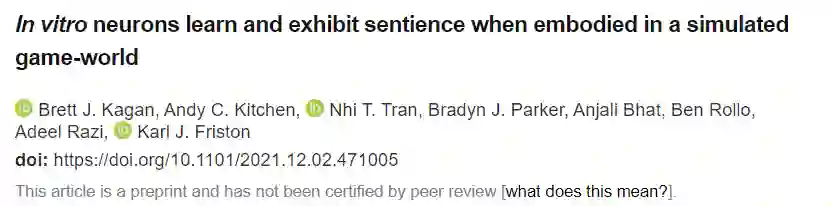 「我们的研究结果表明,在模拟的游戏世界中,一层体外皮层神经元可以自组织并表现出智能、有感知的行为。」Kagan 表示。